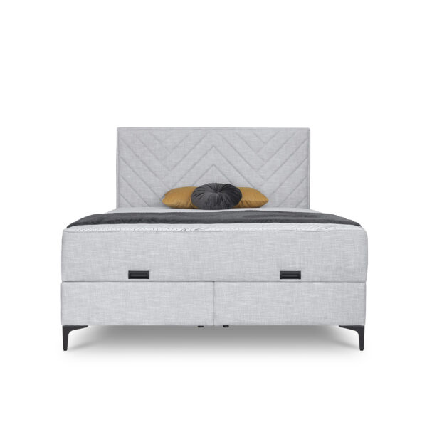 Novi moderni krevet Delta izdvaja se elegantnim uzglavljem i efektnim crnim nogicama. Krevet dolazi sa dušekom i boxom za odlaganje posteljine.